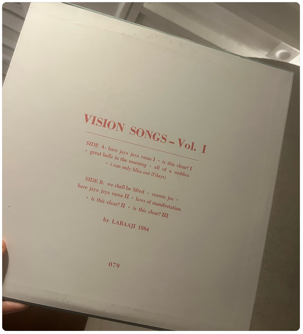 Evenings totally depend on the night. If I’m at home, I’ll put a record on while I make dinner. Last night it was a Laraaji record I got from an amazing collector in New York years ago. Given the amount of time I spend on screens, it feels grounding to listen to something that exists outside of the internet.
